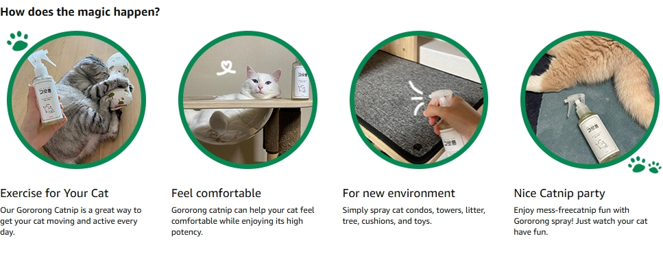 💯 HIGH CAPACITY & POTENCY: Gororong catnip spray comes in a 4-ounce bottle, lasting up to 4 months. It’s perfect for engaging your cat in healthy behaviors like scratching and playing.