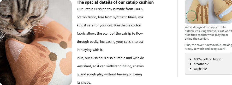 4. When handwashing the cushion, please remove the catnip teabag and filling inside
