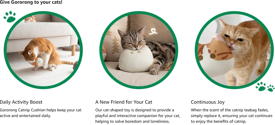🌿 Filled with Natural Catnip: Hand-harvested organic catnip teabag from South Korea is stuffed inside. Our potent, and rich scents of catnip can ensure your adorable feline friend feels excited and energetic. Also, Cushion is refillable, allowing you to replace the catnip according to your cat’s preference